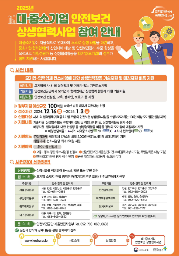 2025년 대·중소기업 안전보건 상생협력사업 참여 안내