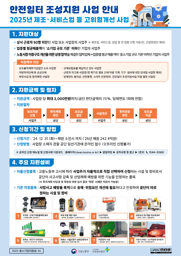 [안전보건공단] 2025년 제조·서비스업 등 고위험개선 사업 안내 OPS