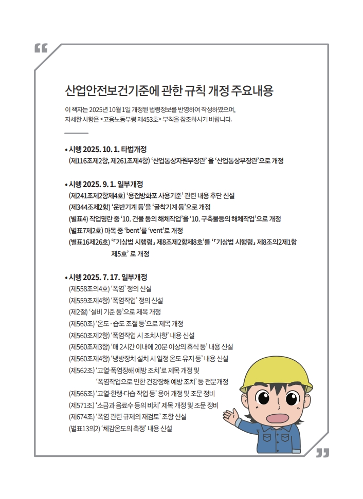 안전보건공단 안전보건자료실에 [2026 만화로 보는 산업안전보건기준에 관한 규칙] 책자가 게시되었으니